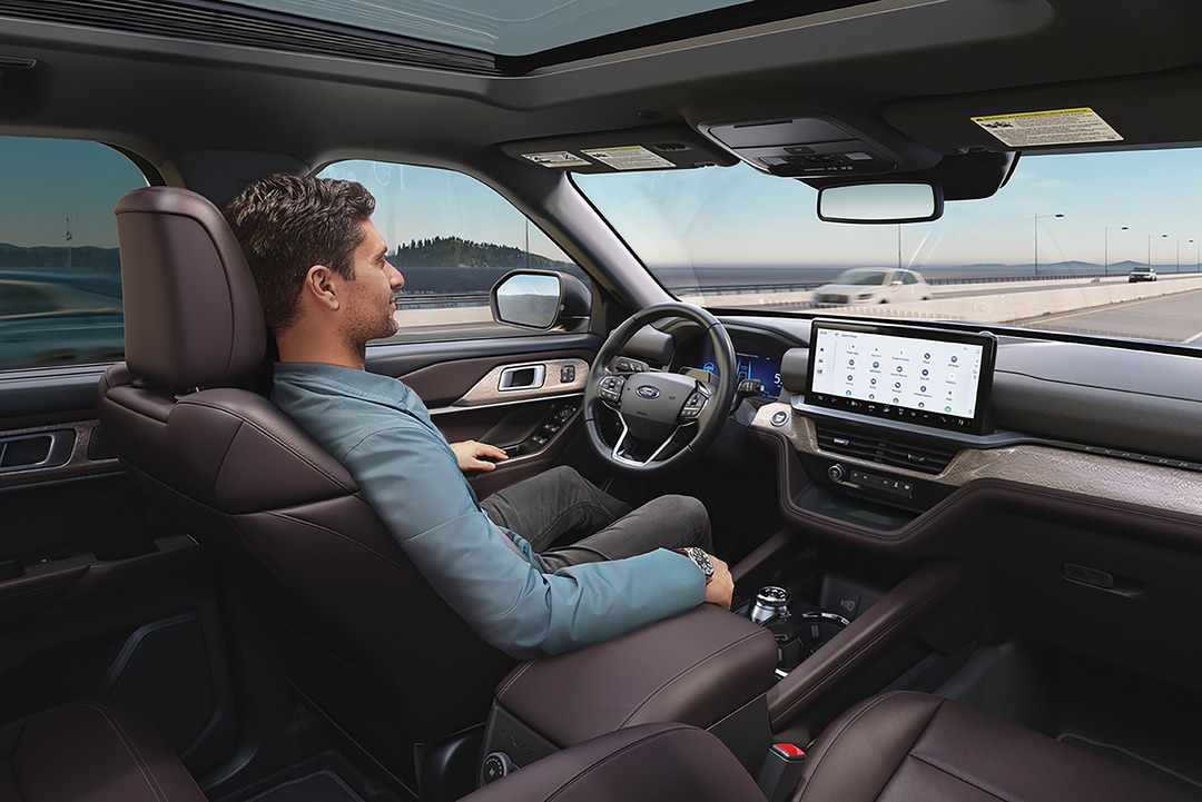 Enter the Explorer to find a well-designed cabin that seats up to seven, depending on the layout. The interior boasts premium materials and meticulous craftsmanship, with options like heated and ventilated seats, leather surfaces, and ambient lighting that add to its luxurious feel. Families in Humboldt, TN will value the versatile seating options, such as available second-row captain's chairs and power-folding third-row seats, which make loading and unloading cargo simple.