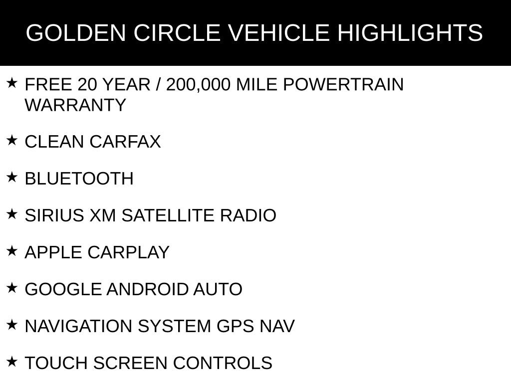 FREE 20 YEAR / 200,000 MILE POWERTRAIN WARRANTY, CLEAN CARFAX, BLUETOOTH, SIRIUS XM SATELLITE RADIO, APPLE CARPLAY, GOOGLE ANDROID AUTO, NAVIGATION SYSTEM GPS NAV, TOUCH SCREEN CONTROLS, BACKUP CAMERA, HOMELINK UNIVERSAL GARAGE DOOR OPENER, KEYLESS PUSH BUTTON START, AUTOMATIC HEADLIGHTS, POWER DRIVER SEAT, POWER PASSENGER SEAT, HEATED FRONT LEATHER SEATS, ALL WEATHER FLOOR MATS, RS SERIES, FLOOR LINER PACKAGE, PREFERRED EQUIPMENT PACKAGE 1RS, 21" GLOSS BLACK ALUMINUM WHEELS, 6-SPEAKER AUDIO SYSTEM FEATURE, AIR CONDITIONING, AUTO-DIMMING DOOR MIRRORS, AUTO-DIMMING REAR-VIEW MIRROR, AUTOMATIC TEMPERATURE CONTROL, BRAKE ASSIST, COMPASS, DELAY-OFF HEADLIGHTS, DRIVER VANITY MIRROR, EMERGENCY COMMUNICATION SYSTEM: ONSTAR AND CHEVROLET CONNECTED SERVICES CAPABLE, FRONT DUAL ZONE A/C, HEATED DOOR MIRRORS, INTEGRATED CARGO LINER (LPO), LOW TIRE PRESSURE WARNING, OCCUPANT SENSING AIRBAG, OUTSIDE TEMPERATURE DISPLAY, OVERHEAD CONSOLE, PANIC ALARM, PASSENGER VANITY MIRROR, POWER DOOR MIRRORS, POWER WINDOWS, REAR WINDOW DEFROSTER, REAR WINDOW WIPER, REMOTE KEYLESS ENTRY, RIDE & HANDLING SUSPENSION, SPEED CONTROL, SPEED-SENSING STEERING, SPLIT FOLDING REAR SEAT, TELESCOPING STEERING WHEEL, TILT STEERING WHEEL, TURN SIGNAL INDICATOR MIRRORS, VARIABLY INTERMITTENT WIPERS.
