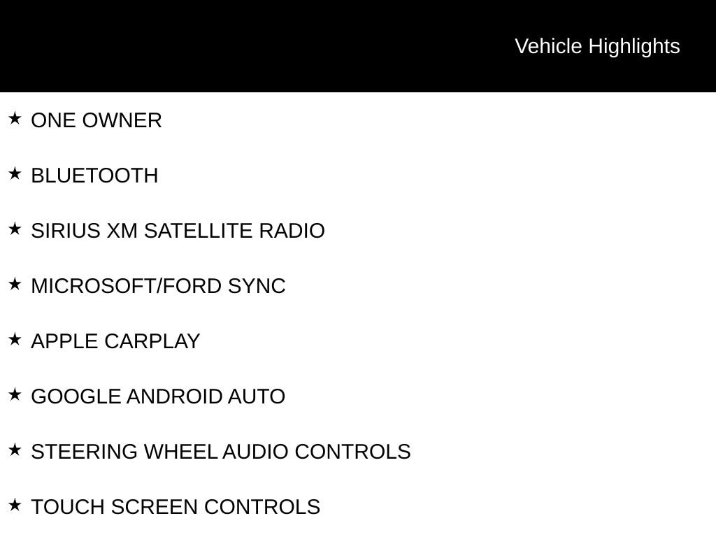 ONE OWNER, BLUETOOTH, SIRIUS XM SATELLITE RADIO, MICROSOFT/FORD SYNC, APPLE CARPLAY, GOOGLE ANDROID AUTO, STEERING WHEEL AUDIO CONTROLS, TOUCH SCREEN CONTROLS, BACKUP CAMERA, WI-FI HOTSPOT, KEYLESS PUSH BUTTON START, AUTOMATIC HEADLIGHTS, POWER DRIVER SEAT, POWER PASSENGER SEAT, HEATED FRONT CLOTH SEATS, 3RD ROW SEAT, ALL WEATHER FLOOR MATS, XLT SERIES, EQUIPMENT PACKAGE 200A, 18" 5-SPOKE SPARKLE SILVER-PAINTED ALUMINUM WHEELS, 6 SPEAKERS, AIR CONDITIONING, AUTOMATIC TEMPERATURE CONTROL, BRAKE ASSIST, COMPASS, DELAY-OFF HEADLIGHTS, DRIVER VANITY MIRROR, EMERGENCY COMMUNICATION SYSTEM: SYNC 3 911 ASSIST, FORDPASS CONNECT, FOUR WHEEL INDEPENDENT SUSPENSION, FRONT DUAL ZONE A/C, HEATED DOOR MIRRORS, LEATHER STEERING WHEEL, LOW TIRE PRESSURE WARNING, OCCUPANT SENSING AIRBAG, OUTSIDE TEMPERATURE DISPLAY, OVERHEAD CONSOLE, PANIC ALARM, PASSENGER VANITY MIRROR, POWER DOOR MIRRORS, POWER WINDOWS, REAR AIR CONDITIONING, REAR WINDOW DEFROSTER, REAR WINDOW WIPER, REMOTE KEYLESS ENTRY, SPEED CONTROL, SPEED-SENSING STEERING, SPEED-SENSITIVE WIPERS, SPLIT FOLDING REAR SEAT, TELESCOPING STEERING WHEEL, TILT STEERING WHEEL, VARIABLY INTERMITTENT WIPERS.