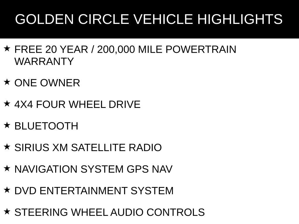 FREE 20 YEAR / 200,000 MILE POWERTRAIN WARRANTY, ONE OWNER, 4X4 FOUR WHEEL DRIVE, BLUETOOTH, SIRIUS XM SATELLITE RADIO, NAVIGATION SYSTEM GPS NAV, DVD ENTERTAINMENT SYSTEM, STEERING WHEEL AUDIO CONTROLS, TOUCH SCREEN CONTROLS, BACKUP CAMERA, HOMELINK UNIVERSAL GARAGE DOOR OPENER, WIRELESS CHARGING, WI-FI HOTSPOT, KEYLESS PUSH BUTTON START, AUTOMATIC HEADLIGHTS, 360 DEGREE CAMERA, ADAPTIVE CRUISE CONTROL, POWER DRIVER SEAT, POWER PASSENGER SEAT, HEATED/COOLED LEATHER SEATS, HEATED REAR LEATHER SEATS, MEMORY PACKAGE / MEMORY SEAT, REMOTE START, HEATED STEERING WHEEL, SPRAY-IN BEDLINER, TOW PACKAGE / TRAILER PACKAGE, INTEGRATED TRAILER BRAKE CONTROLLER, RUNNING BOARDS, BANG & OLUFSEN HIGH END SOUND PACKAGE / 7 SPEAKERS, LARIAT SERIES, EQUIPMENT PACKAGE 502A HIGH, FORD CO-PILOT, FX4 OFF-ROAD PACKAGE, LARIAT CHROME APPEARANCE PACKAGE, MAX TRAILER TOW PACKAGE, 20 CHROME LIKE PVD WHEELS, ADJUSTABLE PEDALS, AIR CONDITIONING, AUTO-DIMMING DOOR MIRRORS, AUTO-DIMMING REAR-VIEW MIRROR, AUTOMATIC TEMPERATURE CONTROL, BRAKE ASSIST, COMPASS, DELAY-OFF HEADLIGHTS, DRIVER VANITY MIRROR, ELECTRONIC LOCKING W/3.55 AXLE RATIO, ELECTRONIC STABILITY CONTROL, EMERGENCY COMMUNICATION SYSTEM: SYNC 4 911 ASSIST, FRONT DUAL ZONE A/C, FRONT FOG LIGHTS, HEATED DOOR MIRRORS, LED PROJECTOR W/DYNAMIC BENDING HEADLAMPS, LOW TIRE PRESSURE WARNING, OCCUPANT SENSING AIRBAG, ONBOARD 400W OUTLET, OUTSIDE TEMPERATURE DISPLAY, OVERHEAD CONSOLE, PANIC ALARM, PASSENGER VANITY MIRROR, POWER DOOR MIRRORS, POWER STEERING, POWER TILT/TELESCOPING STEERING COLUMN W/MEMORY, POWER WINDOWS, REAR STEP BUMPER, REAR WINDOW DEFROSTER, REMOTE KEYLESS ENTRY, SPLIT FOLDING REAR SEAT, TELESCOPING STEERING WHEEL, TILT STEERING WHEEL, TURN SIGNAL INDICATOR MIRRORS, VARIABLY INTERMITTENT WIPERS.