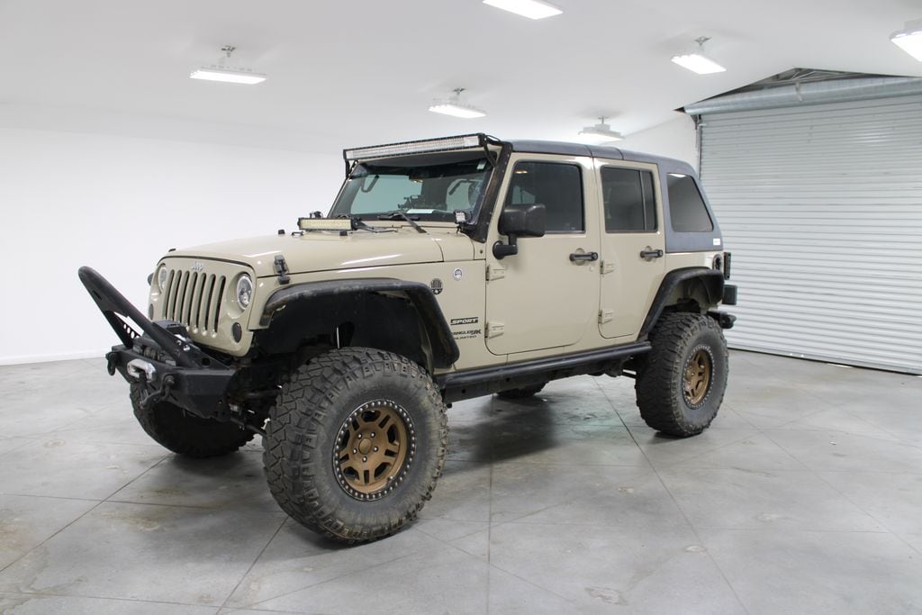 4X4 FOUR WHEEL DRIVE, CUSTOM WHEELS AND TIRES, CUSTOM LIFT KIT, CUSTOM FRONT BUMPER, CUSTOM LED LIGHT BAR, BLUETOOTH, SIRIUS XM SATELLITE RADIO, UCONNECT, UNLIMITED SPORT SERIES, CONNECTIVITY GROUP, POWER CONVENIENCE GROUP, QUICK ORDER PACAKGE 24S SPORT S, TRAILER TOW PACKAGE, 3.21 REAR AXLE RATIO, 8 SPEAKERS, AIR CONDITIONING, AUTO-DIMMING MIRROR W/READING LAMP, BRAKE ASSIST, CD PLAYER, COMPASS, DEEP TINT SUNSCREEN WINDOWS, DRIVER VANITY MIRROR, DUAL FRONT IMPACT AIRBAGS, FRONT BUCKET SEATS, FRONT FOG LIGHTS, INTEGRATED ROLL-OVER PROTECTION, LEATHER WRAPPED STEERING WHEEL, LOW TIRE PRESSURE WARNING, NORMAL DUTY SUSPENSION, OCCUPANT SENSING AIRBAG, OUTSIDE TEMPERATURE DISPLAY, PASSENGER VANITY MIRROR, POWER HEATED MIRRORS, POWER LOCKS, POWER STEERING, REMOTE KEYLESS ENTRY, REMOTE USB PORT, SPEED CONTROL, SUNRIDER SOFT TOP, TILT STEERING WHEEL, VARIABLY INTERMITTENT WIPERS.