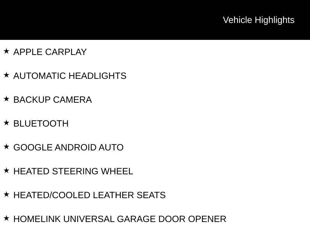 ONE OWNER, BLUETOOTH, SIRIUS XM SATELLITE RADIO, APPLE CARPLAY, GOOGLE ANDROID AUTO, NAVIGATION SYSTEM GPS NAV, STEERING WHEEL AUDIO CONTROLS, TOUCH SCREEN CONTROLS, BACKUP CAMERA, HOMELINK UNIVERSAL GARAGE DOOR OPENER, WIRELESS CHARGING, WI-FI HOTSPOT, KEYLESS PUSH BUTTON START, AUTOMATIC HEADLIGHTS, POWER DRIVER SEAT, POWER PASSENGER SEAT, HEATED/COOLED LEATHER SEATS, SUNROOF/MOONROOF, MEMORY PACKAGE / MEMORY SEAT, POWER LIFTGATE, HEATED STEERING WHEEL, 350 SERIES, PREMIUM PACKAGE, 18 ALUMINUM WHEELS, 9 SPEAKERS, AIR CONDITIONING, ANTI-WHIPLASH FRONT HEAD RESTRAINTS, AUTO-DIMMING DOOR MIRRORS, AUTO-DIMMING REAR-VIEW MIRROR, AUTOMATIC TEMPERATURE CONTROL, BRAKE ASSIST, COMPASS, DELAY-OFF HEADLIGHTS, DRIVER VANITY MIRROR, EMERGENCY COMMUNICATION SYSTEM, FRONT DUAL ZONE A/C, HEATED DOOR MIRRORS, LOW TIRE PRESSURE WARNING, OCCUPANT SENSING AIRBAG, OUTSIDE TEMPERATURE DISPLAY, OVERHEAD CONSOLE, PANIC ALARM, PASSENGER VANITY MIRROR, POWER DOOR MIRRORS, POWER WINDOWS, RAIN SENSING WIPERS, REAR WINDOW DEFROSTER, REAR WINDOW WIPER, REMOTE KEYLESS ENTRY, SPEED CONTROL, SPEED-SENSING STEERING, SPLIT FOLDING REAR SEAT, TELESCOPING STEERING WHEEL, TILT STEERING WHEEL, TURN SIGNAL INDICATOR MIRRORS, VARIABLY INTERMITTENT WIPERS.