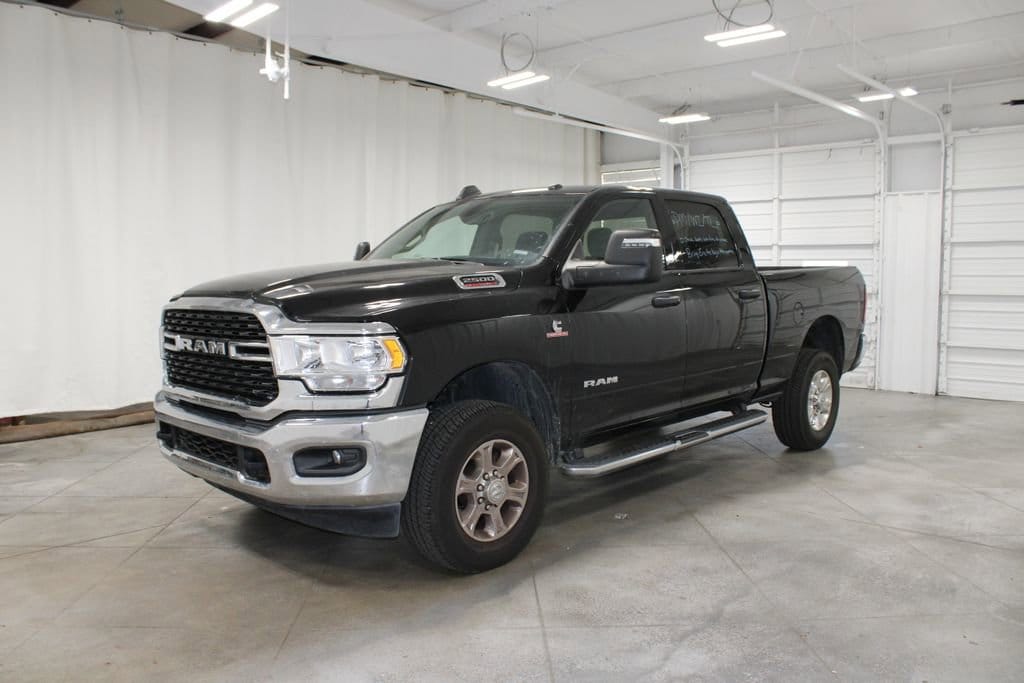 ONE OWNER, 4X4 FOUR WHEEL DRIVE, CUMMINS 6.7L TURBI-DIESEL ENGINE, BLUETOOTH, SIRIUS XM SATELLITE RADIO, APPLE CARPLAY, GOOGLE ANDROID AUTO, STEERING WHEEL AUDIO CONTROLS, TOUCH SCREEN CONTROLS, BACKUP CAMERA, KEYLESS PUSH BUTTON START, AUTOMATIC HEADLIGHTS, POWER DRIVER SEAT, TOW PACKAGE / TRAILER PACKAGE, INTEGRATED TRAILER BRAKE CONTROLLER, RUNNING BOARDS, BIG HORN SERIES, LEVEL 1 EQUIPMENT PACKAGE, QUICK ORDER PACKAGE 2HZ BIG HORN, 18 POLISHED ALUMINUM WHEELS, 3.73 AXLE RATIO, 6 SPEAKERS, AIR CONDITIONING, AUTO POWER-FOLDING MIRRORS, BLACK EXTERIOR MIRRORS, BRAKE ASSIST, COMPASS, DELAY-OFF HEADLIGHTS, ELECTRONIC STABILITY CONTROL, EMERGENCY COMMUNICATION SYSTEM: SIRIUSXM GUARDIAN, EXTERIOR MIRRORS W/HEATING ELEMENT, FORWARD & REVERSE UTILITY LIGHTS, FRONT FOG LAMPS, LEATHER WRAPPED STEERING WHEEL, LOCKING LOWER GLOVE BOX, LOW TIRE PRESSURE WARNING, OCCUPANT SENSING AIRBAG, OUTSIDE TEMPERATURE DISPLAY, OVERHEAD CONSOLE, PANIC ALARM, POWER HEATED FOLD TELESCOPE MIRRORS, REAR FOLDING SEAT, REAR STEP BUMPER, REMOTE KEYLESS ENTRY, SPEED CONTROL, TILT STEERING WHEEL, TOW HOOKS, TURN SIGNAL INDICATOR MIRRORS, VARIABLY INTERMITTENT WIPERS.